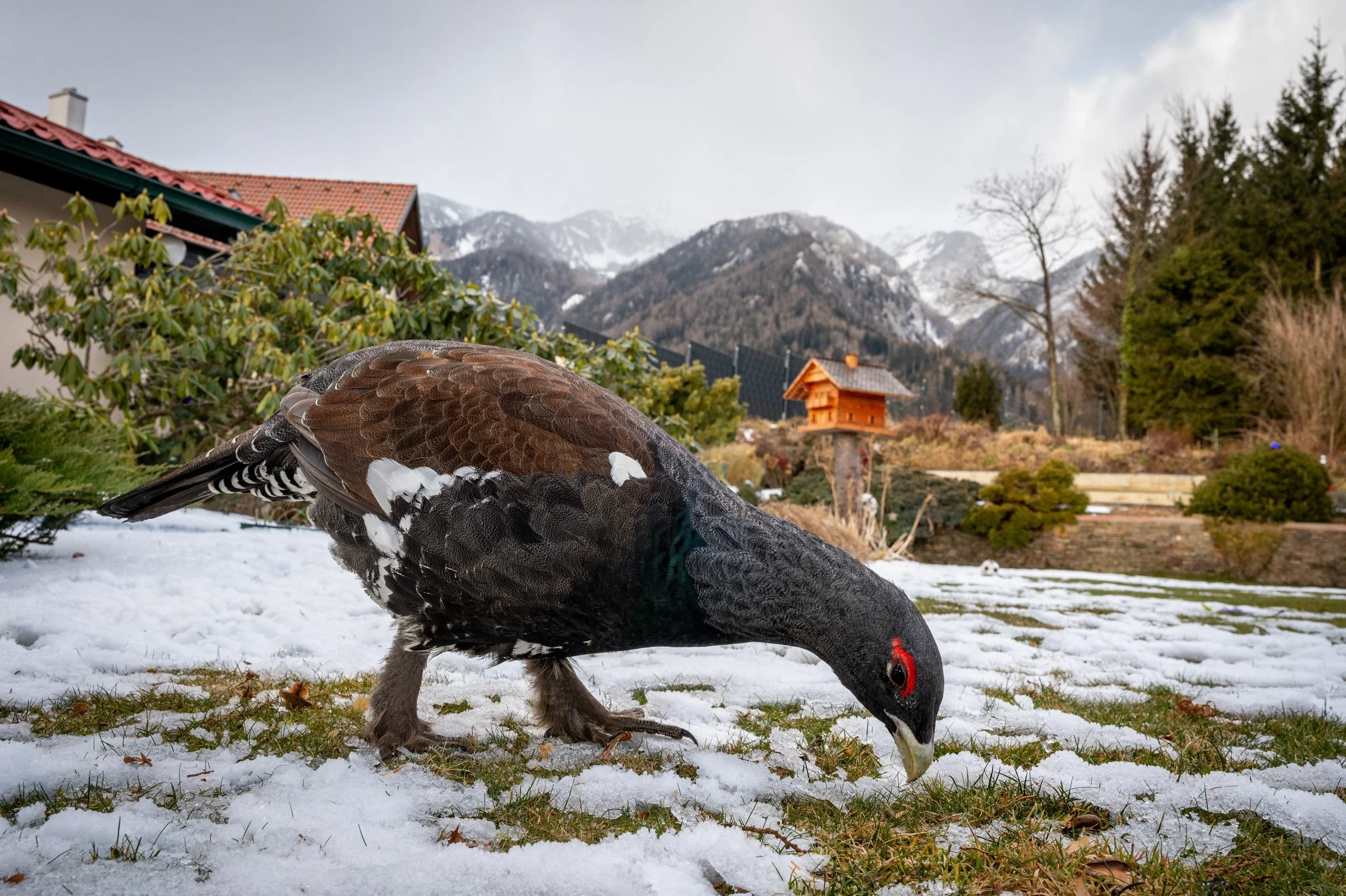 Už je to víc jak rok od úžasného setkání s tetřevem, co pozbyl přirozenou plachost a trávil čas v intravilánu jedné alpské vesničky. Teprv teď se dostávám k bližšímu popsání toho, jak se to celé odehrálo. Některé fotografie tohohle elegantního tvora byly nominovány v loňském ročníku soutěže Czech Nature Photo a taky byly vystavené na Pražském hradě. Zároveň teď vnímám dobrou příležitost probrat se i fotografiemi dosud nepublikovanými. Za týden pobytu v podhůří rakouských Alp jsem pořídil víc než šest tisíc snímků. Co bylo zatím tajemstvím, je, že se mi zde tohoto tetřeva podařilo pozorovat ještě jednou o pár měsíců později, v době, kdy už začínalo jaro. Zajímavé je, že z toho, co je mi známo, tak tetřev byl v oblasti pozorován jen v dobách mých návštěv a pak už se nikdy neukázal, místní ho tak na mou počest pojmenovali Hans.