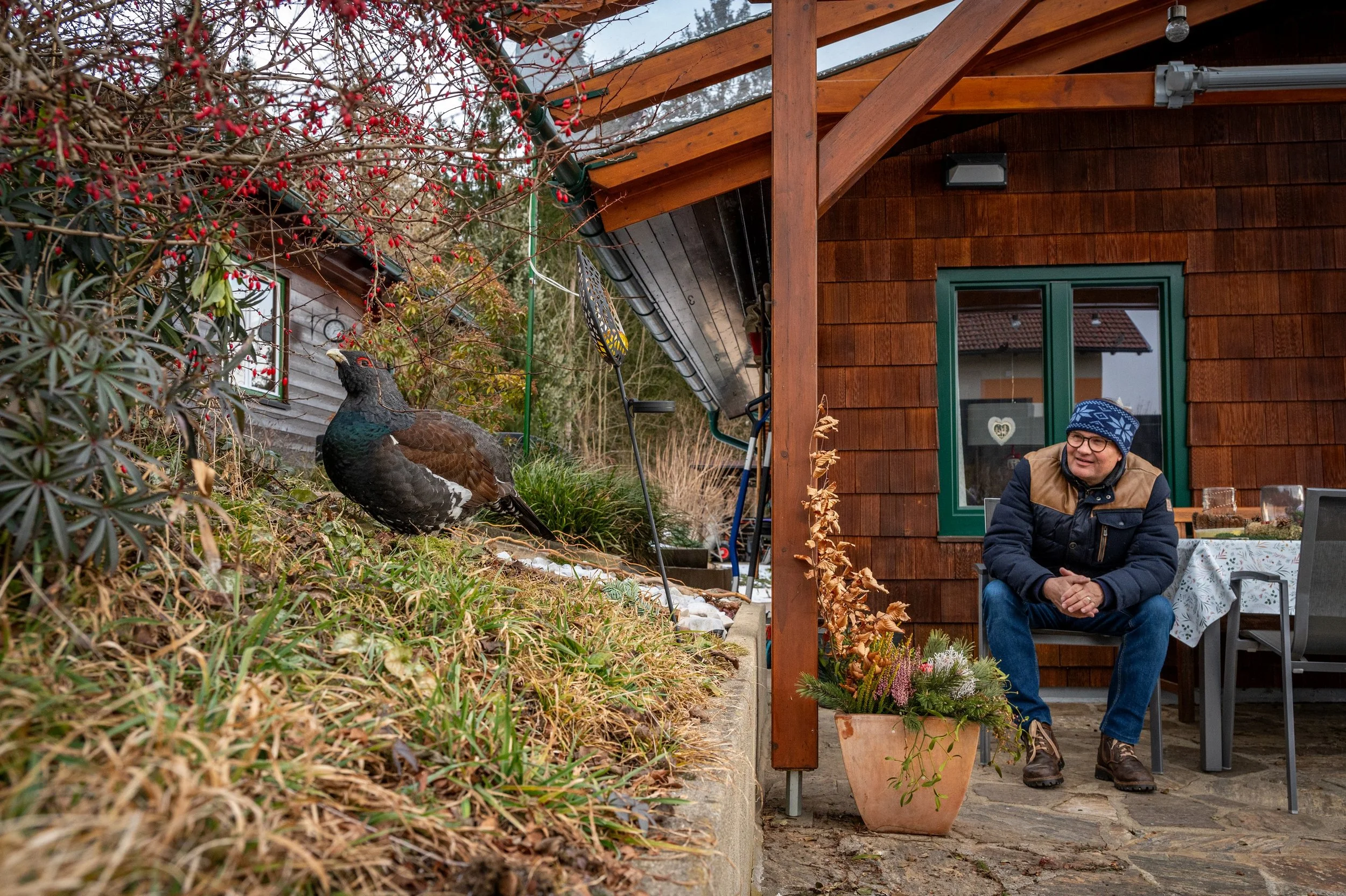Všechno začalo jako taková příjemná povánoční dovolená. Když jsem se jednoho dne vracel z kopců, na horské loučce za vesnicí jsem se potkal se svou ženou. Vraceli jsme se k ubytování podél okraje lesa, načež má žena prohlásila - hele, ten pařez vypadá trochu jako tetřev… a tak jsme se poprvé setkali s Hansem. Hned jsem se ho pokoušel fotograficky zdokumentovat a okamžitě mě překvapil jeho klid a to, že mě nechal dostat se k němu výrazně blíž, než jsem byl od tetřevů zvyklý z minulosti (když jsem je fotografoval u Norsko-Švédské hranice). Bylo zrovna kolem poledního, světlo na focení nebylo úplně nejpřívětivější a tak výsledné snímky nebyly zrovna z nejlepších. Tetřev navíc po chvíli odlétl do korun smrkového lesa a tak jsem se odebral na ubytování.